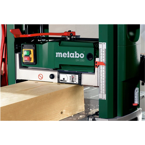 Les réglages de l’épaisseur du rabotage sont précis et simples à effectuer. La manivelle permet de faire descendre le plateau, et une règle graduée sur le côté sert de repère.